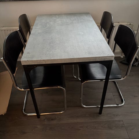 Annetaan ruokapöytä, ollut itsellä työpöytä käytössä ja näyttöjen telineestä jäänyt pyöreät jäljet.