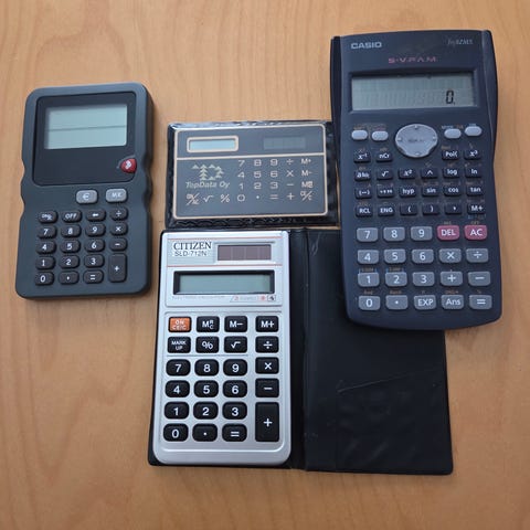 Vanhat ja hyväkuntoiset, vintage taskulaskimet / laskimet, (yht. 4kpl.) tarpeettomana!
