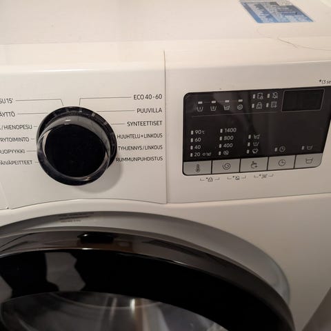 Kuivaava pesukone Samsung 8/6kg suoraveto inverter moottorilla. Täysin huollettu ja puhdistettu hyvin toimiva kone. Pesuainelokero ja luukun tiiviste puhtaat, ei pinttymiä. Kuivauspuolen puhallin ja kanavat puhdistettu. Poistopuoli puhdistettu. Oikeassa kyljessä pieni hankauma, muuten ehyt ja kolhuton. Ikää 8-9 vuotta. Hiljainen käynti ja linkous, laakerit kunnossa. Kuivaus toimii hyvin pienemmälle pyykkimäärälle.