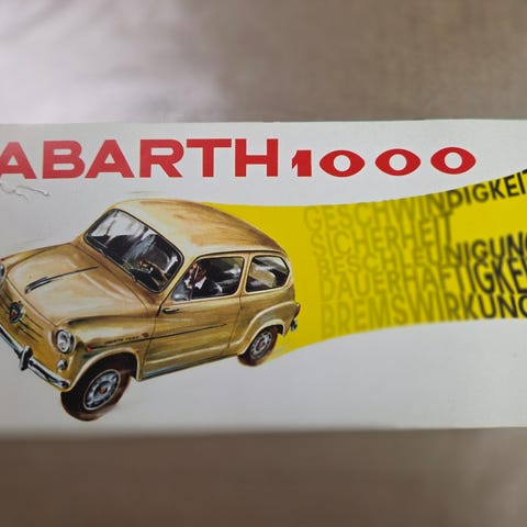 Harvinaisempi aito Abarth & C -kangasmerkki, sisustaan, haalariin, liiveihin tai vitriiniin. Vuodelta 1966.