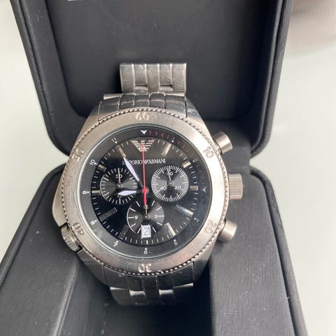 Hyvässä kunnossa oleva 2019 ostettu, mutta 2022 lähtien kaapissa uutta omistajaansa odotellut Armanin rannekello. Patterin vaihto tarvitaan, kaikki muutoin kunnossa, ei naarmuja yms.