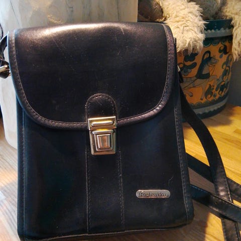 Koko: leveys 24cm, korkeus 16 cm ja syvyys 4,5cm. Hihna 120cm, leveys 1,5cm.