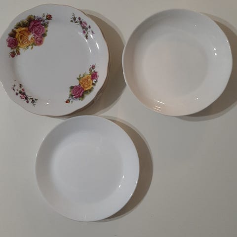 Uudenveroisessa kunnossa, lautaset mikron kestäviä 'my home' 2kpl muistaakseni, ja reunalla oleva iittala, ,kerkesin jo pakata nämä ja pitkä kirkas lasi. Ehjiä, yhteensä 2e