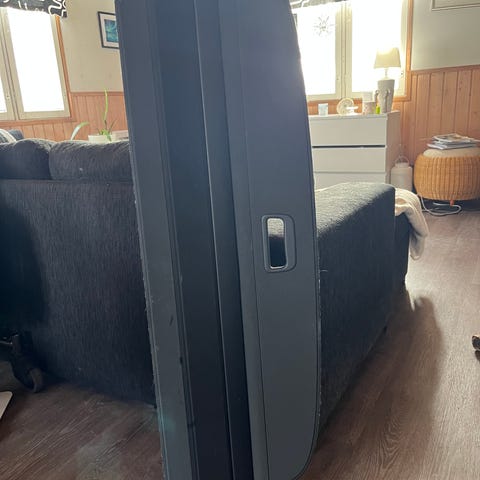 Myyntiin tarpeettomaksi jäänyt Skoda Octavian tavarahyllyn kansi. Vm. 2020.