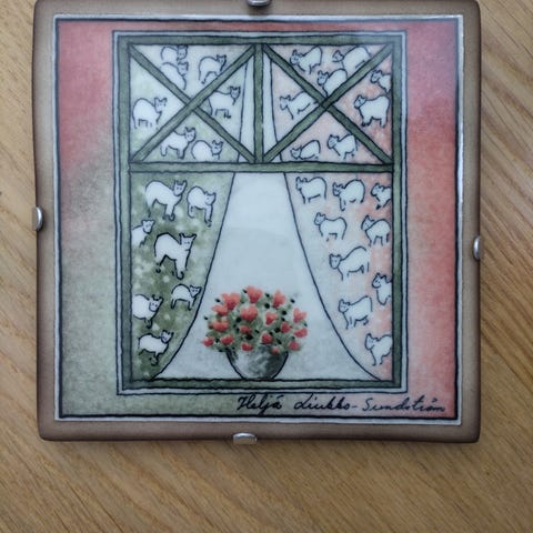 Myydään Heljä Liukko‑Sundströmin Arabialle suunnittelema keraaminen seinälaatta “Kodin ilo” (1993). Soikea, kaunis teos, joka on sekä keräily‑ että lahjatavara‑klassikko.