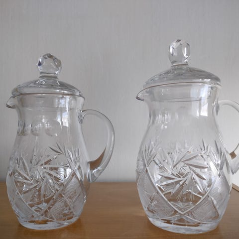 Myydään kaunis kristallikarahvi. Se on ehjä ja hyväkuntoinen. Siinä ei ole säröjä tai kolhuja. Sen korkeus on noin 25 cm.