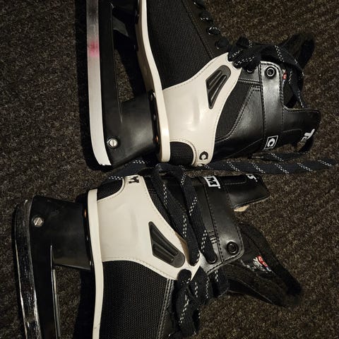 Täysin käyttämättömät, teroitetut hokkarit. Eivät mahtuneetkaan lapselle, jolle ne oli viime keväänä ostettu.