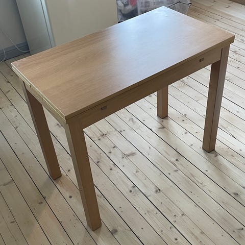 Ikea Bjursta ruokapöytä, jossa mukana kaksi +40cm jatkopalaa. Siisti kuntoinen.