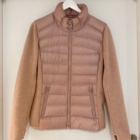 Analogin laskutakki. S-koko. Beige. Kainaloventilaatiot. Huipussa takana kiristys. Hyvin taskuja.