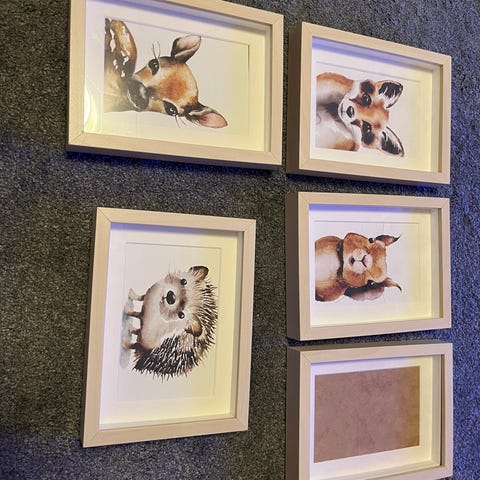 kolme pientä, täysin käyttämätöntä valokuvakehystä. Hinta 0,5 euroa kappaleelta.