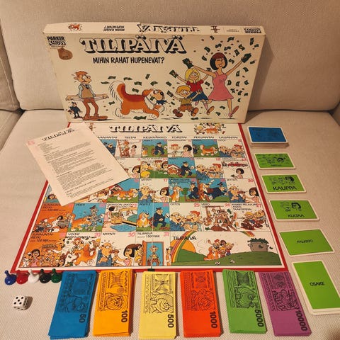 Yksi "Kultaa" kortti kadonnut, mutta korvattavissa ylinääräisellä "Parker"-kortilla. Alkuperäiset pelinappulat!