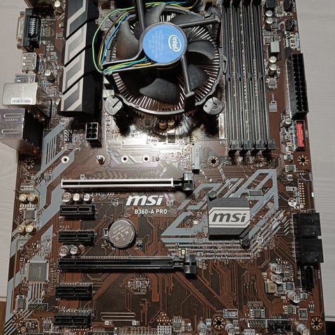 Myynnissä käytöstä poistuneet emolevy ja prosessori.