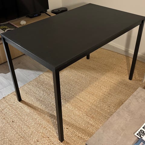 Kiiltävä lakkapintainen 120x60 pöytä. Reunoissa ja jaloissa jonkin verran naarmuja ja levyssä muutama jälki jota en saanut pois. (Kuvat). Pienellä tuunauksella nuo saattaa saada peitettyä/poistettua. Muuten täysin ehjä.