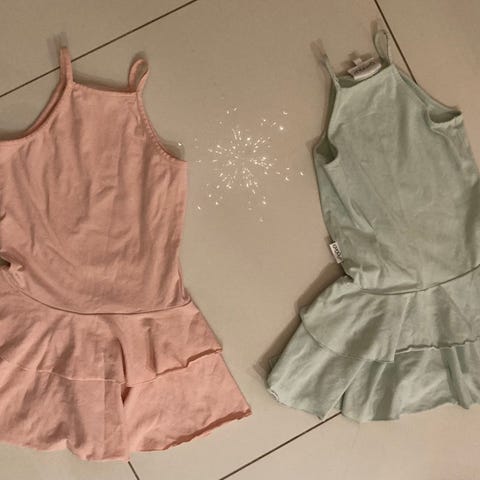 Gugguu relax t-paita koko 116, Newbie ribbi t-paita koko 110/116 ja H&M ribattu t-paita koko 122/128, mutta samaa kokoa kuin Gugguu ja Newbie.