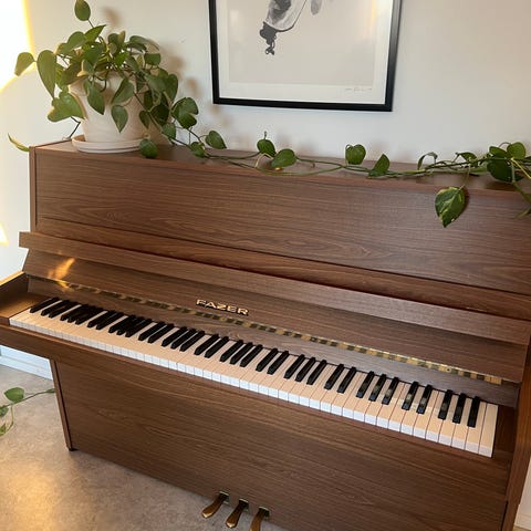 Toimiva peruspiano, virityksestä on aikaa mutta vielä on tuolla soiteltu! Myydään pois naapuriystävällisemmän sähköpianon tieltä:) Pedaali toimii, hiljasuuspoljin toimii myös kun sitä pitää jalalla mutta sen itsestäänpysyvä lukitussysteemi ei toimi!