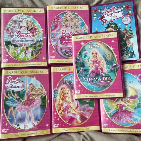 Kymmenen Barbie elokuvaa, levyjen kunto vaihteleva mutta kaikki muut katsottu joko ps5 konsolilla tai Blu-ray soittimella läpi ja toiminut moitteetta, paitsi pähkinänsärkijä baletissa ja 12 tanssivaa prinsessaa ei oo katottu läpi. Joten 100% toimivuutta en voi luvata. Salainen ovi on muoveissa.
