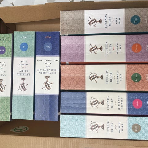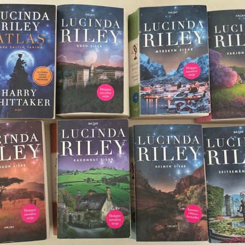 Lucinda Rileyn Seitsemän sisarta -kirjasarjan 7 ensimmäistä kirjaa suomenkielisinä kirjoina. Kirjojen kustantaja on Bazar. Sarja kertoo sisaruksista ja heidän tarinoistaan eri puolilla maailmaa. Sopii luettavaksi aikuisten kaunokirjallisuutena ja romaanisarjoista pitäville lukijoille.