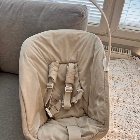Tripp trapp new born osa. Sopii n. 9kg asti tai n. puolivuotaaksi. Käytetty sekä vanhassa, että uudessa tripp trapp tuolissa. Päälinen irroitettava ja juuri pesty. Koiratalous. Lelukaaren saa myös irti halutessaan.