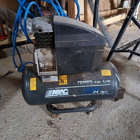 Myydään toimivana käytöstä poistettu vanha kompressori. Ilmantuotto 300l /min, säiliö 300L