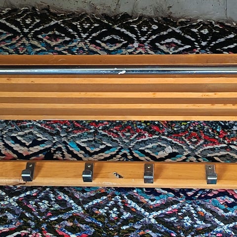 Myydään kuvan mukainen naulakko. Leveys 80cm. Naulakko on kotimainen. Noudettavissa heti sopimuksen mukaisesti. Maksu käteisellä.