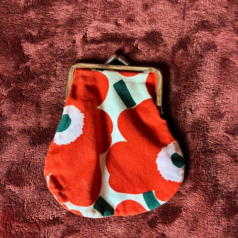 Hakusanat: pussi pussukka kukkaro lompakko kolikkokukkaro silmälaseilla keltainen oranssi pinkki vaaleanpunainen valkoinen vihreä silmälasi meikkipussi