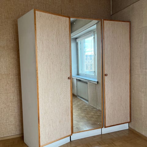 Annetaan Martelan kokopuinen vaatekaappi. Painava, omat kantajat mukaan.
