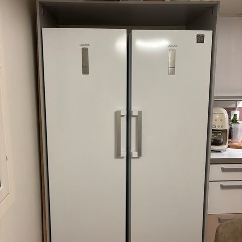 Meillä lämpimässä autotallissa lisäkäytössä olleet pieni pakastin ja pieni jääkaappi.