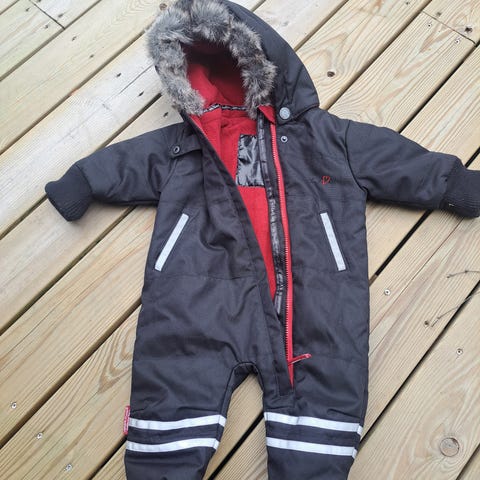 Reiman toppahaalari kokoa 68/74, mutta menee vielä ainakin noin 80 kokoon asti. Lahkeista saa yhdistettyä myös lämpöpussin.