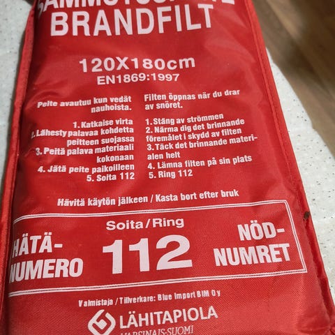 Nordic Safe sammutuspeite, koko 1,2 m x 1,8 m. Punainen suojapussi, josta peite vedetään ulos alareunan hihnoista. Tarkoitettu pienten tulipalojen, kuten keittiö- tai tekstiilipalojen, tukahduttamiseen. Soveltuu käytettäväksi kotona, mökillä tai muissa sisätiloissa. Pakkauksessa käyttöohjeet suomeksi ja muilla kielillä.