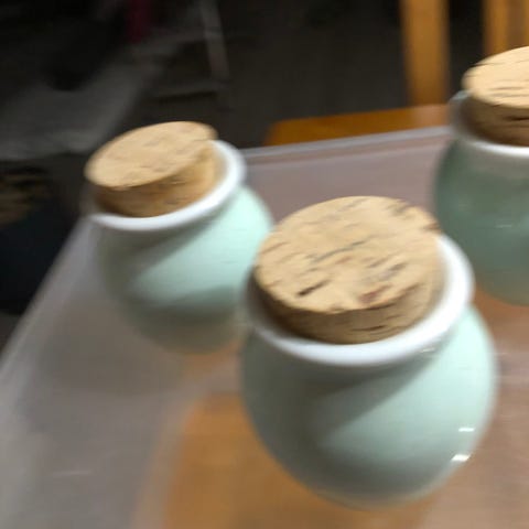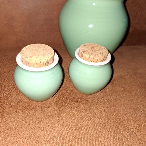 Pentik keramiikkapurkit, keltainen ja vihreä kuviointi