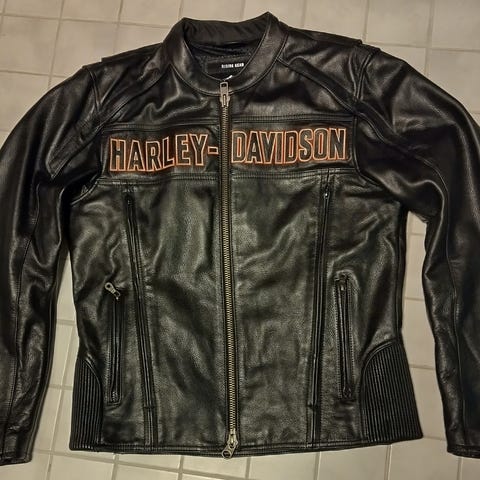 Harley-Davidson nahkaliivi musta. Liivi on valmistettu aidosta nahasta ja siinä on sileä vuori. Edessä on nepparikiinnitys ja kaksi sivutaskua. Sivusaumoissa on nyöritys istuvuuden säätöön. Rinnassa on kohokuvioitu Harley-Davidson -logo. Oli itselle liian pieni. Koko: 2XL