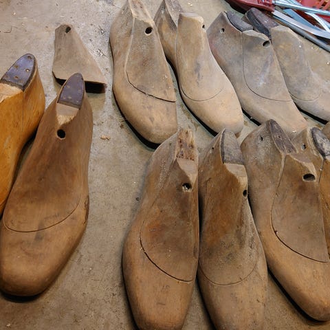 Vanha valurautainen suutarin lesti,korkeus 55cm