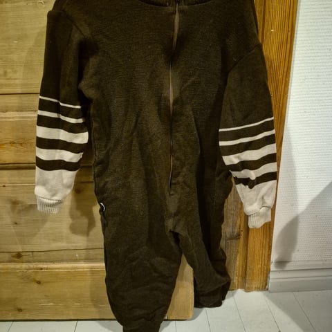 Myydään tumnansininen/raidallinen villahaalari. Kokolappu irronnut, arviousin kooksi ehkä 98/100/110, katso mittanauha kuvassa.