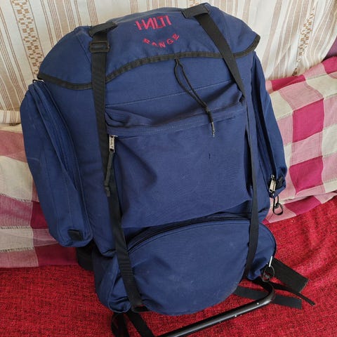 Kaksi hienoa retrorinkkaa tarjolla eli vanha vaalensininen Fjällräven ja Neuvostoliittolainen(!) punainen Ermak. Molemmissa kaikki osat tallella ja kunnossa eli kiinnikkeet, vetoketjut ja muut toimivat niinkuin pitää. Varsinkin Fjällräven pinnalta hieman nuhjaantunut, mutta molempien pussiosat pitäisi pystyä pesemään pesukoneessa. Fjällussa ei vyöhihnaa, mutta sellaisen voi askarrella melko helposti itse niin halutessaan. Ermakissa on hento vyöhihna, sitä voi toki tuunata paremmaksikin. Materiaali Ermakissa puuvillaa, Fjällussa muovipohjaista. Yhteishinta 50€, saa tarjota yhdestäkin jos haluaa.