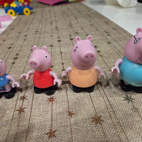 Pipsa possu duplot. Mukaan kuvassa näkyviä palikoita, mm. 2xalusta, 3x Pipsa figuuri, 2x Jyri, isä possu, äiti possu ja Lotta Lammas. Tässä luultavasti paloja useammasta Pipsa setistä, koska figuureja useita. Eläintalous, vain nouto Härmälästä.