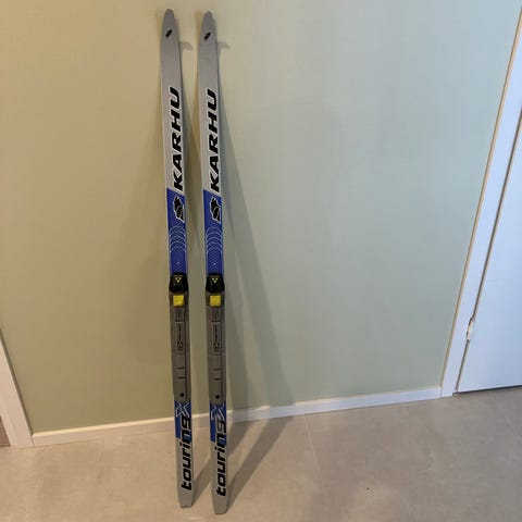 Madshus Race Cap Classic -maastohiihtosukset, pituus 195 cm. Väri sininen mustilla yksityiskohdilla. Suksissa siteet valmiina, sidejärjestelmä näkyy kuvissa. Soveltuvat perinteisen tyylin maastohiihtoon.