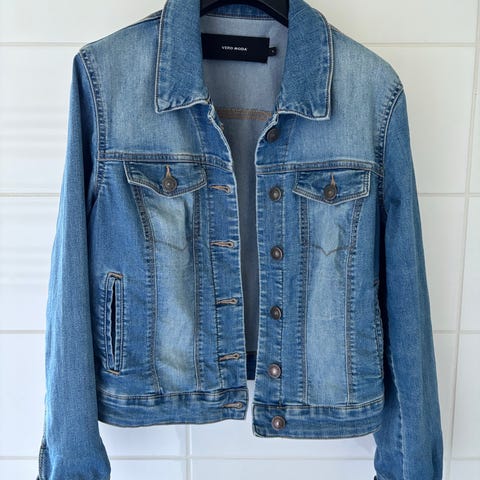 Vero Moda makea punainen biker-henkinen pitkä farkkutakki, koko S. Todella hyvännäköinen päällä, itselleni harmillisesti käynyt liian pieneksi. Materiaalina puuvilla, siistissä kunnossa, hienoista ajan patinaa kuten farkkutakeissa kuuluu ollakin, hihat ja kaulukset ym siistit, ks kuvat. Takissa on edessä viisto vetoketju ja painonapit sekä useita taskuja. Vyötäröllä on irrotettava vyö. Hihansuissa on remmit säätöä varten. Siisti vuorikangas jossa kuvio selän kohdalla. Sopii myös välikausikäyttöön vuorin ansiosta.