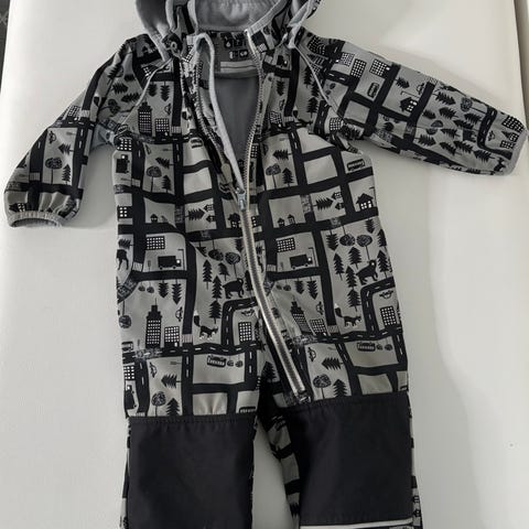Nallekuvioinen Jonathanin softshell haalari. Takana oleva heijastin osittain irronnut.