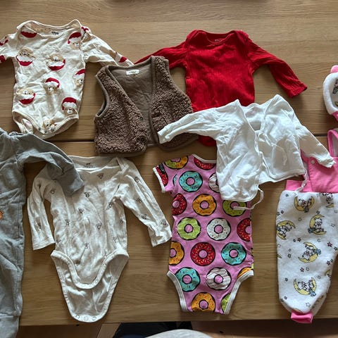 Pääosin 62-68 koon hyväkuntoiset vauvan vaatteet.Osa enemmän käytettyjä ja osa ihan käyttämättömiä.Ei lemmikkejä.Vain nouto