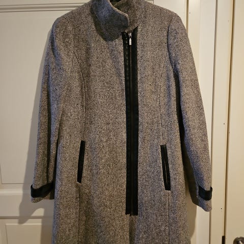 ”Your Face pitkä takki, koko 36. Väri musta. Materiaalina villa. Takissa on napitus edessä ja etutaskut läppäkansilla. Selkäpuolella on koristeellinen nappilista ja hihansuissa nappiyksityiskohdat. Vuorillinen malli, sopii naisille arkikäyttöön ja siistimpään pukeutumiseen”