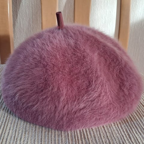 Noin 1980-luvulta, ikäisekseen hyvässä kunnossa säilynyt Kangol naisten baskeri. Made in United Kingdom. 45% angora, 30% chlorofibre/polychlorid, 25% nylon/polyamide.