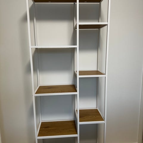Hyväkuntoinen, noin vuoden vanha Jyskin hyllykkö. Liukuovet yhdessä kaapistossa.