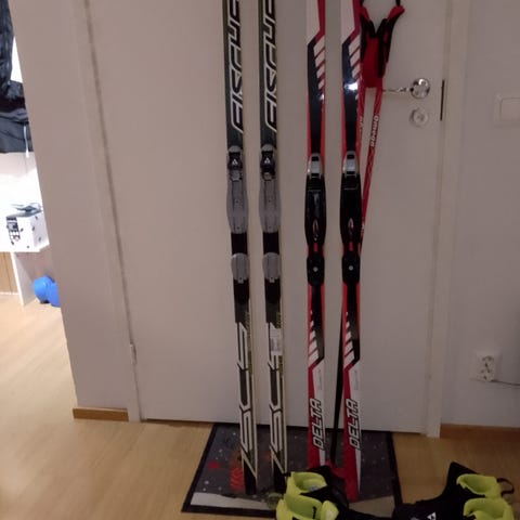Myydään hiihtomonot ja sukset - kaikki yhdessä: 20 e. Hiihtokengat: Koko : 43 ( 12 e.), kaikki on hygieneässä kunnossa.