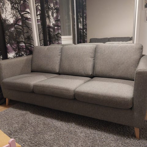 Sohva 2-istuttava, kangas, harmaa