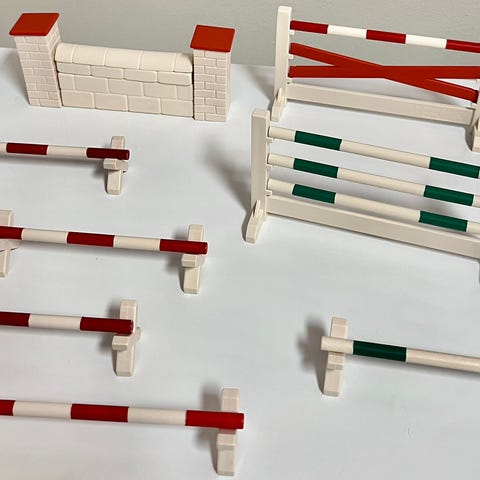 Muurieste, puomit ja ristikko sekä kavaletti. Jämäkät esteet aitoja Schleichejä.