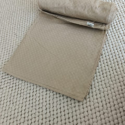 Vaalean harmaa pöytäliina, 100 % puuvillaa. Koko noin 240 cm x 140 cm. Pieni ruudukkokuviointi. Ehjä, puhdas, siisti ja käyttämätön.