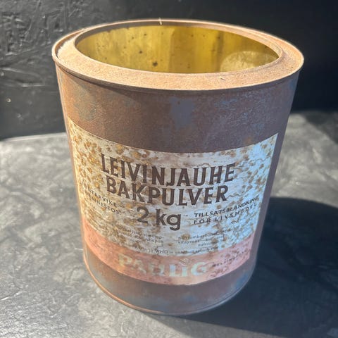 Joskus käytössä ollut jäljistä päätellen mutta viime vuosikymmenet minulla vain koristeena ollut Paulig - kahvipurkki.