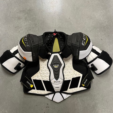 Myydään harrastekiekossa tämän kauden käytössä ollut CCM XF Pro hartiasuojat / rintapanssari. Pro tason "ykköskorin" suojat, edelleen myynnissä oleva Tacks-sarjan lippulaivatuote, jota myös NHL:ssä pelaajien päältä löytyy (esim. Tage Thompson).