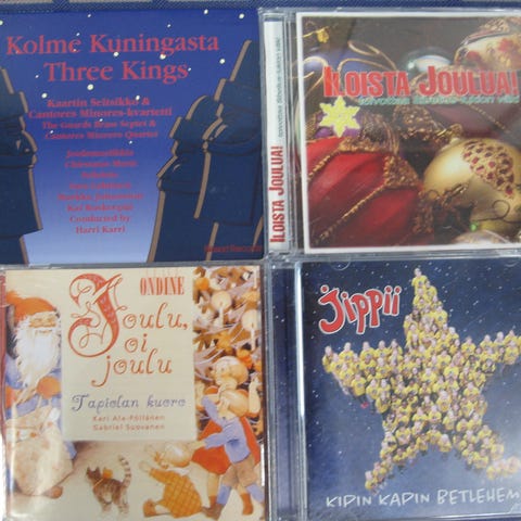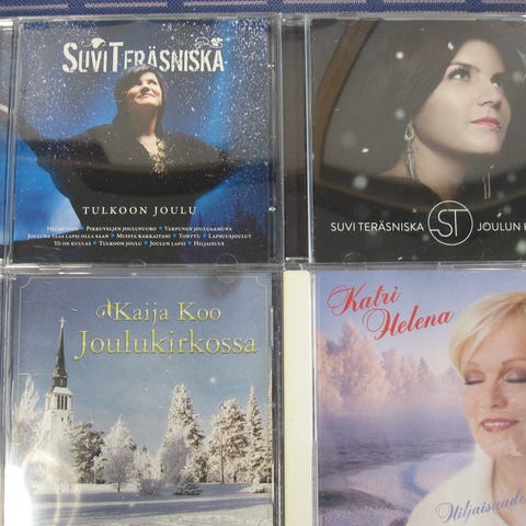 Myydään jouluisia cd-levyjä 5,00 euron kappale. Kaikki cd:t kuunneltu ja todettu toimiviksi. Cd:ssä voi olla naarmuja & kansipapereissa jälkiä/omistuskirjoituksia, mutta cd-kotelot ovat ehjät. Postituskulut ostajalle ja noutokin sovittavissa.