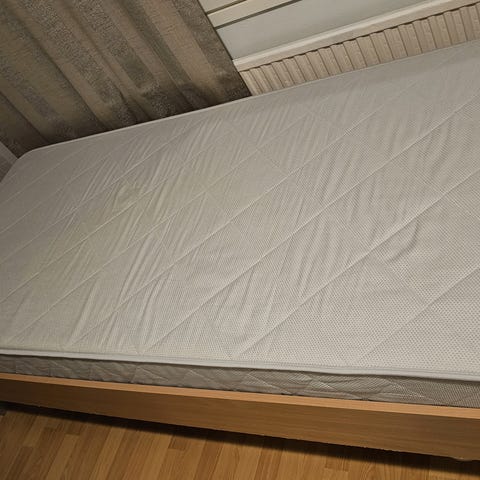 Parisänky leveys 180cm, mukaan 2 x 90cm x 200cm joustinpatjat (Asko) ja petari.